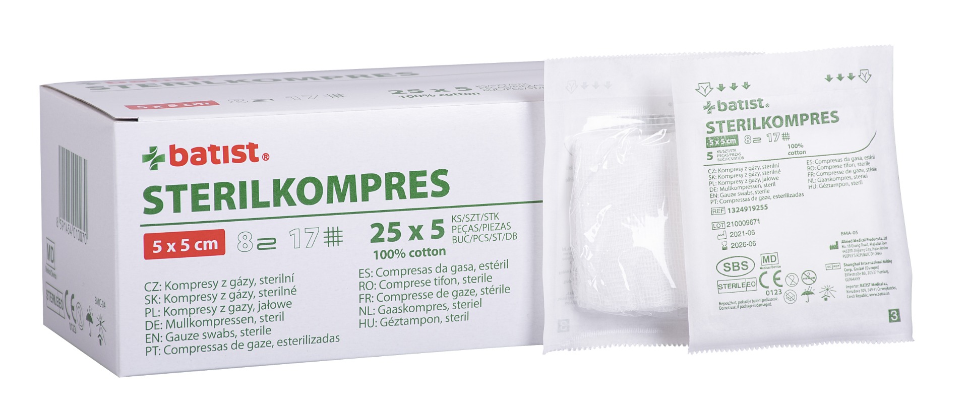 Osmi vrstvý gázový kompres, sterilní je vyroben z vysoce savé gázy ze 100% bavlny.